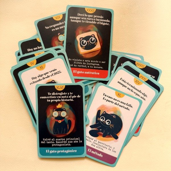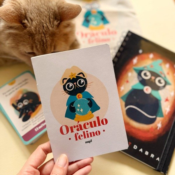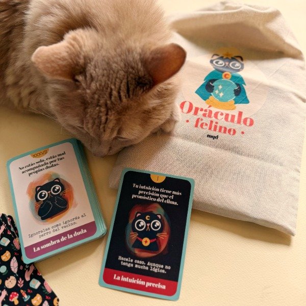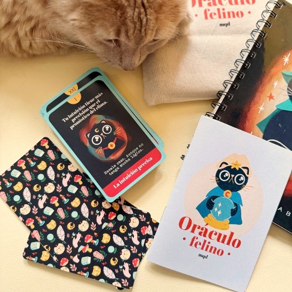 EL Oraculo felino son 48 cartas ilustradas + fanzine + cuaderno + bolsita de tela para guardar todo!