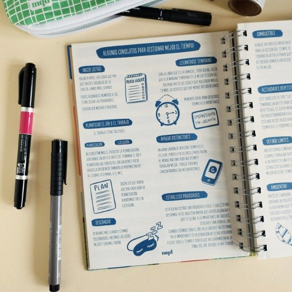 Es una agenda perpetua, es decir, una agenda para fechar: la podes empezar y usar cuando quieras.